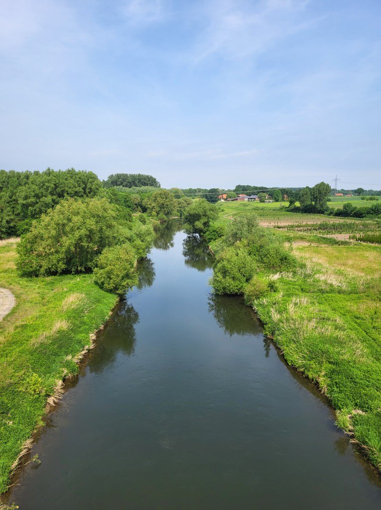 Es waren aber noch einige Kilometers zu strampeln, doch als ich am Dortmund-Ems Kanal angelangt war, machte das Fahren auch wieder Spaß. Ich machte mir nur noch Gedanken darüber, wo ich heute Nacht unterkomme. Die Jugendherberge war komplett. Blieb mir nur der Campingplatz. Aber bei den Wetteraussichten heut Nacht war das nicht so prickelnd. In einer Pause las ich meine Mails durch und andere Sozialmedias. Auf WA hatte Karina nachgefragt wo ich denn sei und wie weit ich heute noch fahren würde. Bis Münster, war meine Antwort. Da bot sie mir doch so mir nix dir nix ihre Wohnung zum übernachten an. Es sei angemerkt, dass sie sich z.Zt. im Urlaub in Norwegen aufhält und wir uns nur ein einziges mal begegnet sind, auf einem Vortrag zu Renée’s NPL- Tour. Mir machte der Vorschlag ehrlich gesagt etwas Angst. Soooo viiiieeeell Vertrauen hab ich äußerst selten erlebt. Aber was soll’s. Jeder muss mal über seinen eigenen Schatten springen. Ich nahm das Angebot dankend an und so sitze ich eben im trockenen während es draußen regnet.