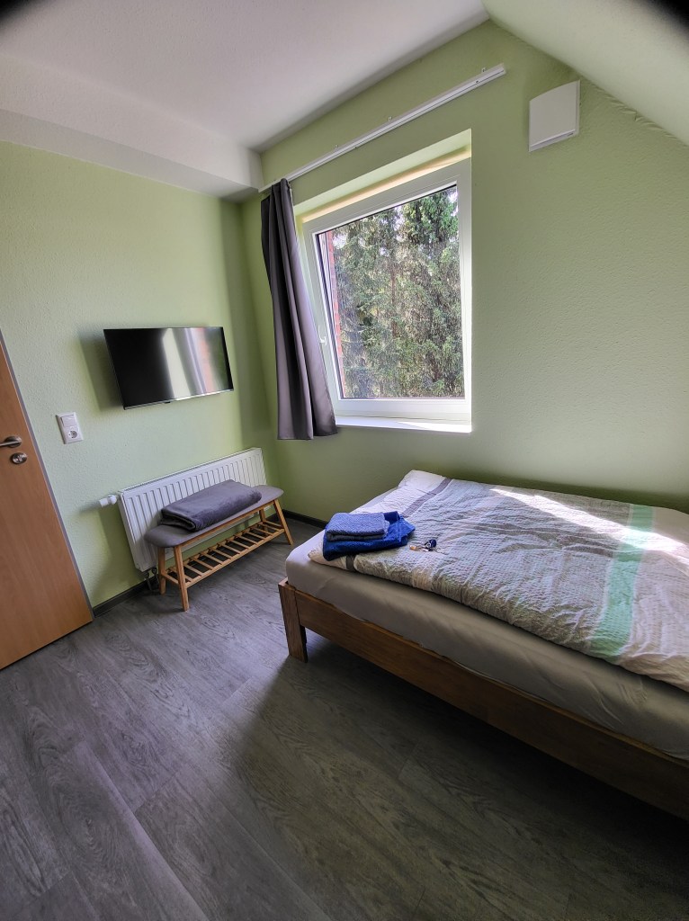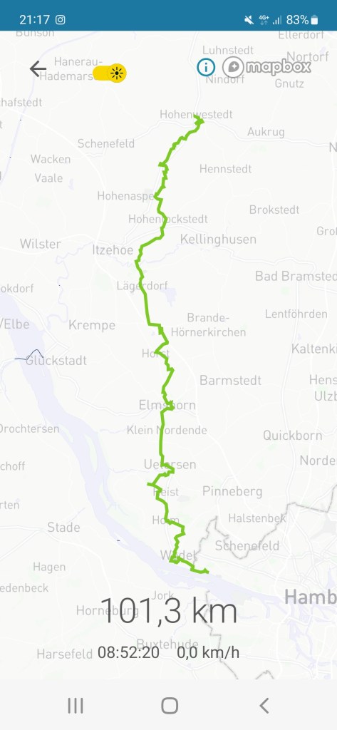 Heute komme ich in einem Gästehaus in Hohenwestedt unter. Es gibt ein Zimmer mit Bett und Schreibtisch, Gemeinschaftsküche und ein Gemeinschaftsbad. Alles sehr geräumig, sauber und adret und das ganze für 35 Euro. Hab mich dann um meine Wäsche gekümmert, geduscht und die Accus geladen und danach noch schnell zu REWE und mir ein Stück saarländische Heimat geholt in Form einer Pizza mit großem W davor. Eine Dose dänischen Bieres ginge auch noch mit und jetzt mach ich mir nen gemütlichen Abend.