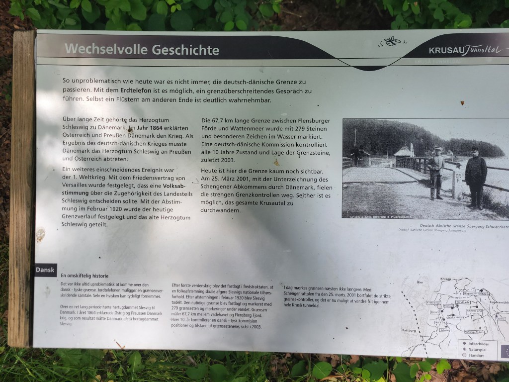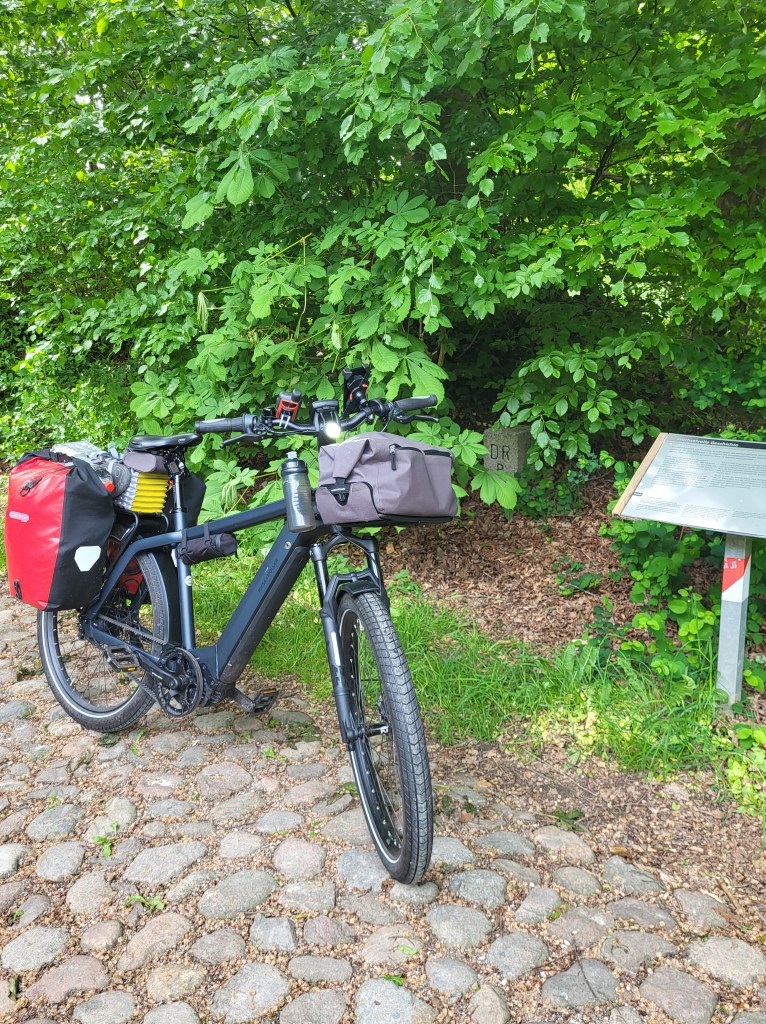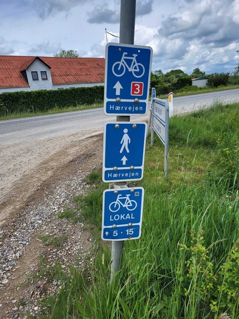 Heute um 5 uhr mal wieder zu früh aufgewacht. Das infernalische Gebrüll der Vögel reißt mich aus den schönsten Träumen. Ich bleib aber trotzdem noch im Bett und steh erst um 7 mit dem Weckerkli geln auf. Um 8 gibt’s Frühstück, also noch genug Zeit meine siebentausend Sachen zu sortieren, die Gepäcktaschen von der gestrigen Schlammschlacht auf verregneten Waldwegen zu säubern. Das Bike sieht auch aus wie die Sau. Da geh ich aber mit dem Schlauch einer Waschanlage ran. Nach dem Frühstück wurd aufgesattelt und ab geht es in die Innenstadt. Ich brauch ne neue Fleecejacke und ne wasserdichte Dokumententasche. T-Shirt wird auch noch gebraucht. Da der Laden erst um 10 öffnet, gönne ich mir einen 2. Kaffee im Café schräg gegenüber. Die benötigten Sachen schnell gekauft und anschließend geht’s Richtung dänische Grenze. Bin in Harrislee über die grüne Grenze rüber. Auf Infotafeln konnte ich mich über die deutsch-dänische Grenzgeschichte schlau machen. Ich habe heute und die kommenden Tage alle zeit der Welt, da mein Rucksack, den mir mein Freund Werner von Köln aus nach Hirtshals hinterhergeschickt hat, noch nicht angekommen ist. Laut Sendungsverfolgung hat er mich heute früh um 4 Uhr eingeholt. Er liegt jetzt in Neumünster, nicht weit von Flensburg entfernt und ich hoffe, dass er mich diese Nacht überholen wird. Wäre dumm wenn ich die Wandersachen nicht am Montag parat habe. Aber schaumermal. Heute gibt’s wieder ein Zeltübernachtung auf einem Campingplatz in Vojens. Bin der einzige Gast auf dem Platz. Dann ein gut’s Nächtle und bis morgen in aller früh.