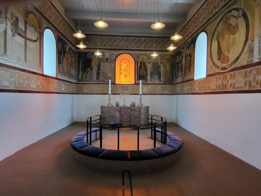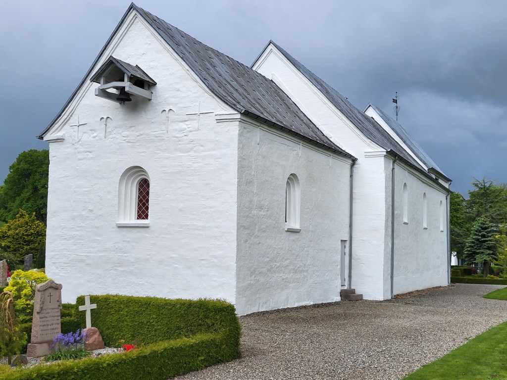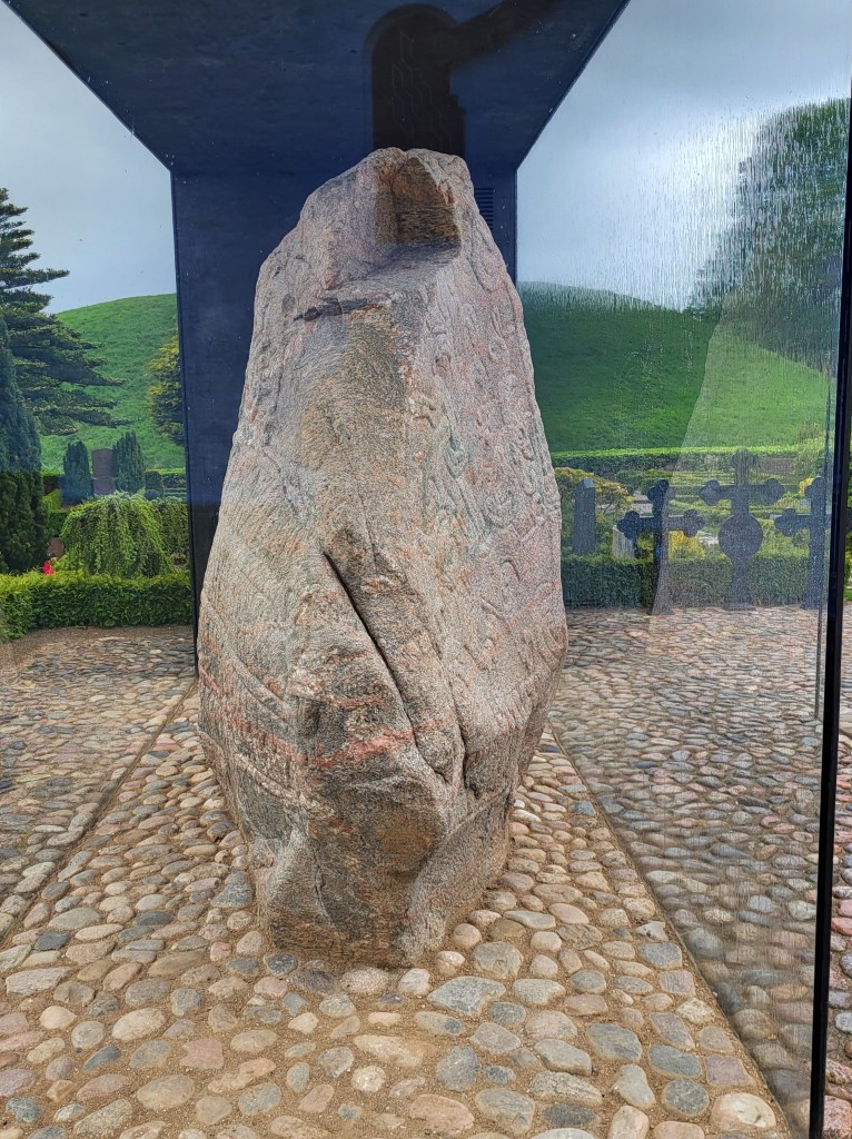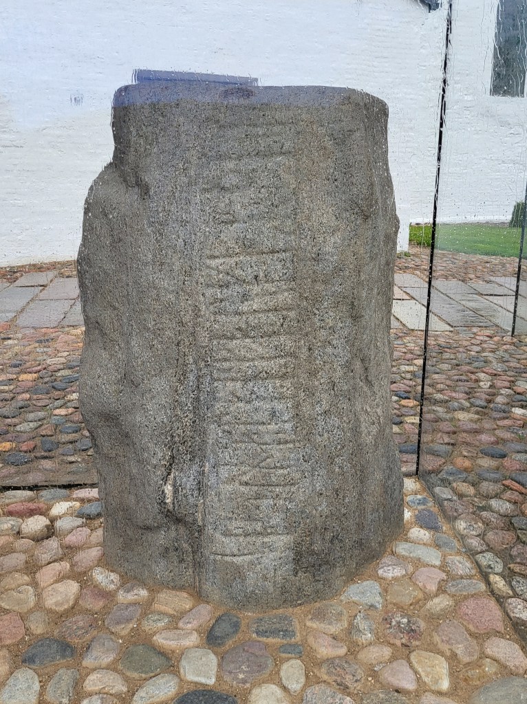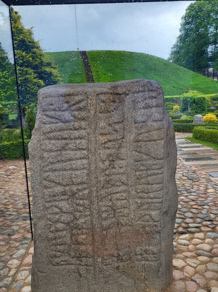 Moin moin, war das eine ruhige Nacht. Wider allen Befürchtungen blieb es doch ruhig. Um halb sieben treibt es mich aus dem Schlafsack und ich schlendere mal zur Rezeption des Campingplatz. Zufällig ist dort eine Angestellte in der Garage zu Gange und ich kann meinen fahrbaren Untersatz früher als gedacht an mich bringen. Schnell zum Zelt zurück und schon mal alles zusammengepackt. Aber das Zelt ist noch zu nass und ich beschließe abzuwarten bis die Sonne drauf scheint. Hab mir erst mal nen Kaffee gekocht und das Gelände näher angeschaut. Der Platz liegt direkt am Ufer des Fårup See. Bei schönem Wetter kann man hier bestimmt einiges unternehmen. Aber zur Zeit sind fast ausschließlich Festivalbesucher anwesend. Die wenigen Urlauber oder Dauercamper haben sich in ihren Burgen verbarrikadiert. Vereinzelt sehe ich welche an ihren Tischen beim Frühstück. Bei den „Rockern“ hört man nur geschnarche. Als ich zurück bin, war das Zelt schon soweit abgetrocknet, dass ich es einpacken konnte. Dann wollte ich zum Kiosk belegte Brötchen kaufen und noch nen Kaffee dazu, aber leider hatte die gute Dame in leidlichen Deutsch gemeint, dass sie keine Sandwichs verkauft. Aber Frühstücken konnte sie mir anbieten. Ja, dann nehm ich Frühstück. Wieviel ich denn haben möchte? Ja seh ich denn so verhungert aus? Nätürlich wollte ich nur ein Frühstück. Sie packte mir das Frühstücken in eine Tüte, den Kaffee drückte sie mir in die Hand und bediente schon die anderen Kunden die etwas ungeduldig hinter mir warteten. Ich setzte mich mit meinem Frühstücken samt Kaffee nach draußen und staunte nicht schlecht als mich ein einzelnes Mohnbrötchen anlachte. Da dämmerte mir, dass es sich um ein Verständigungsmissgeschick (hab soeben ein neues Wort erfunden) handeln konnte. Frühstücken nennt man hier wohl Brötchen. Lass es dir schmecken Manni. Es fing auch noch zu regnen an und mit einem dritten Kaffee hab ich mich unters Vordach der Rezeption verdrückt. Es war bereits halb zehn als ich endlich loskam. Oben im Ort angekommen gab es Kultur auf meiner Cooltour. Hier haben vor 1000 Jahren Wikingerkönig Gorm und sein Sohn Harald Blauzahn, der Erfinder des Bluetoth, besser gesagt der Namensgeber dessen, einen Grabhügel errichtet und ein über 300 meter langes Wikingerboot aus Steinen gebaut. Drumherum wurden auf 1,4 km Länge ein Palisadenzaun gezogen der heute mit riesen Betonpfeiler markiert ist. All das hat mir so gut gefallen, dass ich komplett die Zeit vergaß und um kurz vor Mittag weiterfuhr. Es ist Mittag und ich bin noch keine 5 km weit gekommen. Aber niemand drängt mich. Da das Wetter heute recht viele Schauer versprach und Windgeschwindigkeiten von über 50 km/h angesagt wurden, wollte ich nur eine kurze Etappe hinlegen. Ich kämpfte die nächsten 60 Kilometer gegen dieses Wetter an und hab mich dann in einer B&B Pension eingemietet. Nach dem kargen Frühstücken heut morgen meldete sich doch der Hunger an. Mal sehen was Real Turmat heute so zu bieten hat. Euch allen ein gut’s Nächtle.