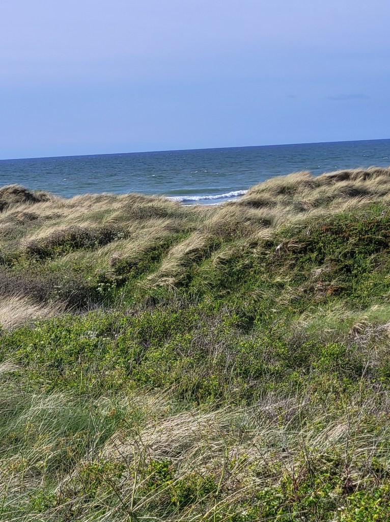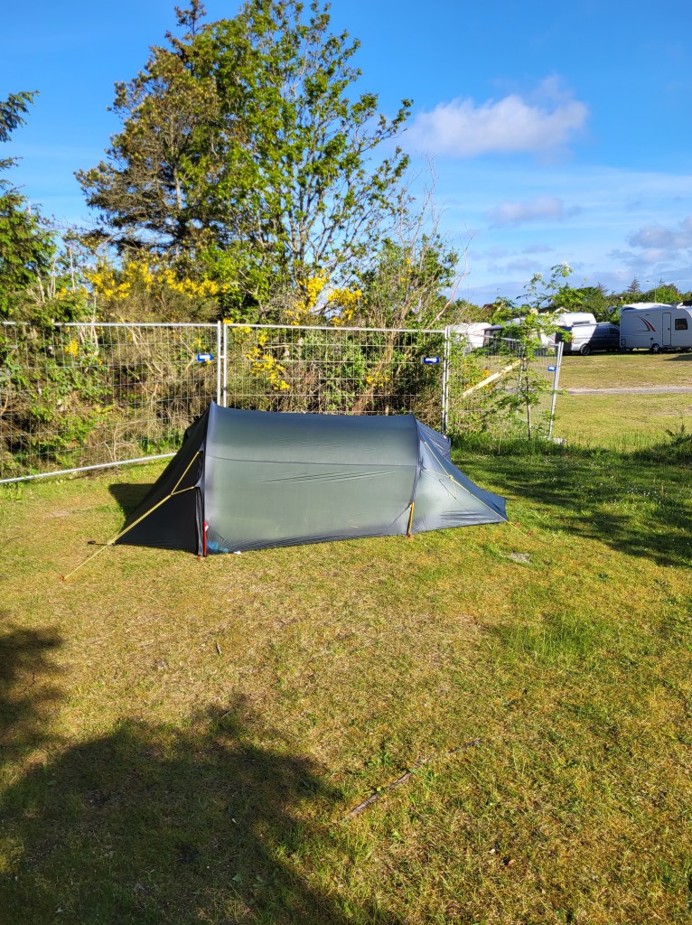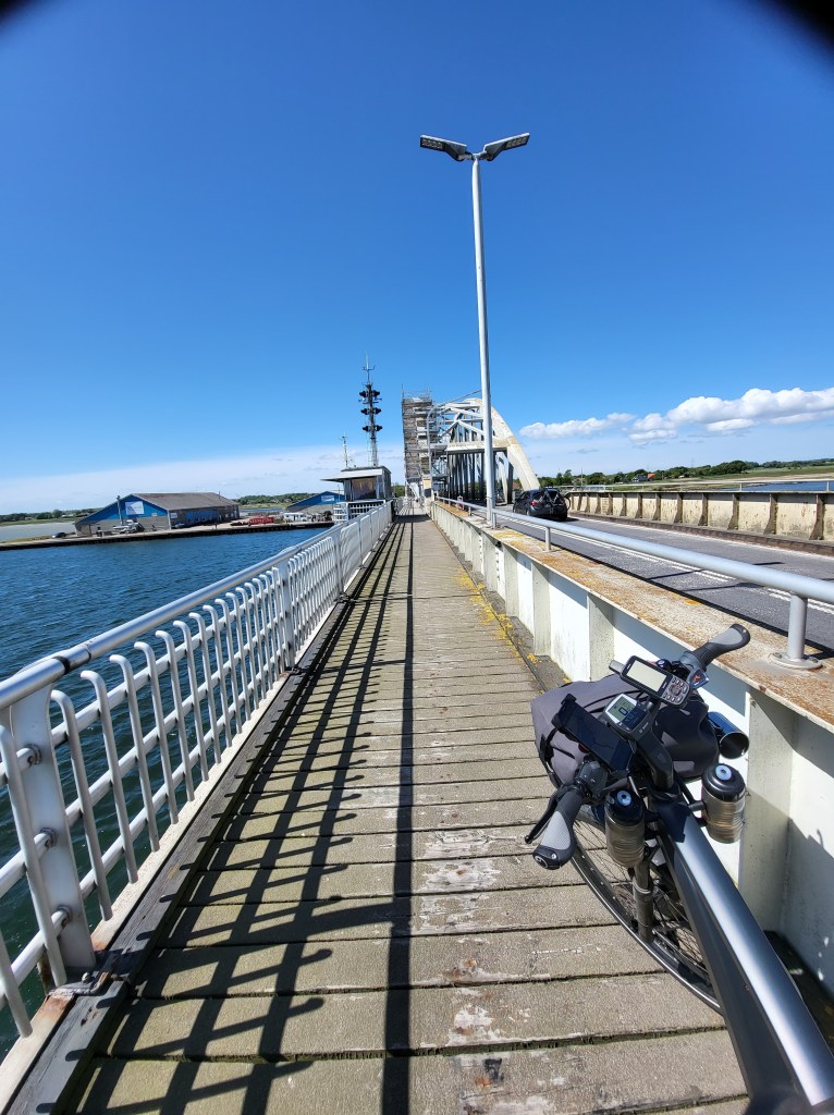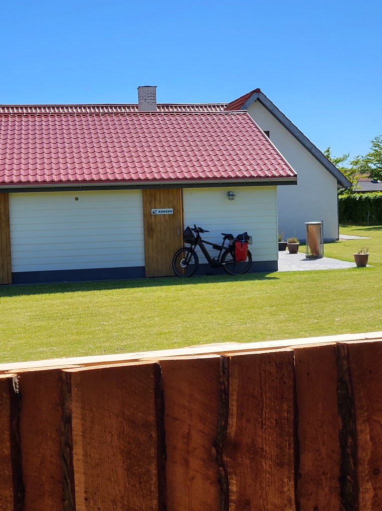 So gegen 13 Uhr überkam mich doch das Magenknurren und an einem netten Rastplatz mitten im Wald machte ich mich über meine Erungenschaften her. Dank des Rückenwindes hatte ich auch schon eine Strecke von 35 km geschafft. Laut Routenplaner weicht die Strecke vom eigentlichen Radweg ab um etwa 15 km querbeet abzukürzen. Weil der Tag aber so schön ist und die Windrichtung stimmt, beschließe ich dem Verlauf des Radwegs zu folgen. Ich passiere den Aggersund, lade irgendwo auf einem neu errichteten Schelterplatz den Accu nach und genieße den schönen Tag. Eigentlich wär’s ein schöner Fleck zum übernachten, aber es snd noch 80 km bis Hirtshals und ich möchte morgen relativ entspannt dort ankommen. Ich will mindestens noch 30 km weiter fahren. Aber da ich dem Original Streckenverlauf folge, sollten es noch ganze 50 km werden, bis ich mein Tagesziel erreiche. Es geht windbedingt wie unter vollen Segeln weiter und bei Kollerup stoße ich endlich auf den Nordseeküstenradweg. Von da ab werde ich regelrecht erschlagen von der Schönheit der Natur um mich herum. Der Weg wird holpriger, aber die Natur macht das wieder wett. Gegen 19h45 erreiche ich den Campingplatz, der ziemlich geschlossen aussieht. Ich klingle und sogleich öffnet mir doch noch jemand. Ich bekomme einen Plan vom Platz in die Hand gedrückt, eine Platznummer zugewiesen und ein Kabel für die Stromversorgung ausgehändigt. Alles bestens. Leicht erschöpft falle ich auf meine Isomatte und bin gleich hin und weg. Duschen heb ich mir für morgen auf.