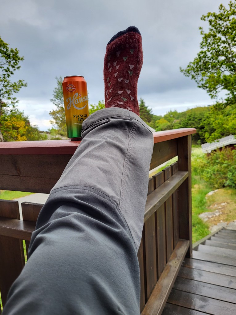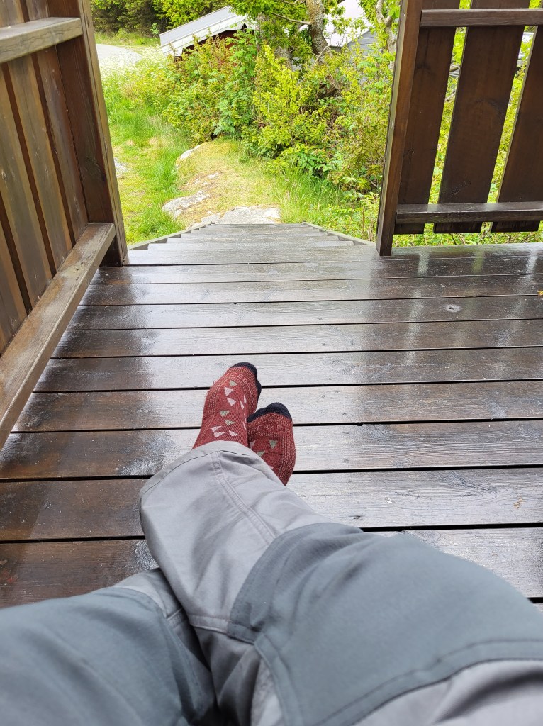 Besser kann ein Tag kaum beginnen. Ich wache um 5 Uhr auf, erledige mein morgendliches Geschäft und rasiere mich ein letztes mal für lange Zeit. Ich packe den Rest zusammen und was ich nicht brauchen kann lass ich einfach in der Hütte zurück. . Dann um kurz nach 7 mache ich mich mit Sack und Pack auf zur Rezeption, wo ich mir die Buchungsbestätigung ausdrucken lasse und den freundlichen Leuten vom Empfang auf Wiedersehen und einen großenDank ausspreche, weil sie mein Fahrrad kostenlos für mich aufbewahren. Die liebe Dame die sich bereit erklärte, mich zum Fähranleger mitzunehmen, ist auch schon da. Sie tankt noch Wasser in ihren Wassertank vom Camper und schon starten wir Richtung Hafen. Die kurze Fahrt war äußerst amüsant. Haben viel gelacht. Sie hat mich, nachdem wir schon vor dem Check In für Fahrzeuge standen, extra nochmal zum weiter entfernten Terminal gefahren. Hierfür nochmal vielen Dank an die Gute. Ich wünsch ihr eine gute Reise nach Langesund. Nun sitz ich hier und warte bis ich um 9 uhr einchecken kann und um 11:45 hier ablege. Ist ne lange Wartezeit, aber besser als die 6 km vom Campingplatz zum Hafen zu laufen. (sagt der, der 2600 km zum Nordkap laufen will🤣)Mit der Highspeedfähre bin ich in ca. 2½ Std übern Bach rüber. Um 11:10 Uhr kommt der Schuttlebus, der die Fußpasagiere zum Anleger abholt und pünktlich um 11:45 Uhr heißt es Leinen los. Das Boot ist zwar schnell und man merkt kaum Wellenbewegung aber die Luft hier drin ist zum schneiden. Was ist das dür ein Schiff wo es kein Außendeck gibt? Würd ich nicht nochmal buchen. Doch punkt 14 uhr legen wir an und 15 min später bin ich schon von Bord gegangen. Mein schwerer Rucksack möchte wieder zurück. Beharrlich zieht er mich in die entgegengesetzte Richtung. Aber ich bin halt ein sturer Bock und irgendwann gibt er nach. Mein erster Weg fürt mich zum norwegischen DNT, dem Wanderverband der außer Hütten auch noch einige Shops unterhält. Ich brauche neue Wanderstöcke. Denn die alten hängen ganz friedlich zu Hause an der Garderobe. Will nicht sagen, dass ich vergesslich bin, ich hätte irgendwann eh ein paar neue gebraucht. Die alten hab ich schon seit 2008 und bin zwei Caminos mit denen gegangen. Nicht mitgezählt, die vielen Touren zu Hause rum. Die haben sich ihren Ruhestand redlich verdient! Nachdem ich beim DNT fündig wurde und ich mir richtige Hightechstöcke gekauft hab (als DNT-Mitglied gab’s noch etwas Rabatt) bin ich gleich rüber zum Busbahnhof und 15 Minuten später saß ich schon im Bus Richtung Lindesnes, d.h. erstmal ging es nur bis Mandal. Dort angekommen, hieß es 45 min auf den Bus nach Vigeland zu warten. In Vigeland angekommen dachte ich zunächst, wenn das so weitergeht, dann bin ich in einer Std in Lindesnes. Doch weitgefehlt! In Vigeland waren sie grad dabei die Bürgersteige hochzuklappen. Ich fragte ein junges Paar ob sie wüssten ob heute noch ein Bus nach Lindesnes fährt. Das Mädel meinte, dass es schon arg spät sei und ich wohl bis morgen warten müsse. Sie fragte einen Busfahrer, der grad da stand ob er wisse wann der nächste fahren würde. Er sagte dass heute nix mehr geht, er aber Feierabend hat und in Ramsland wohnt und er mich bis dorthin mitnehmen kann. Und so kam es dass ich quasi als Anhalter in einem Bus mitfahre und dieser mich bis 7 km vor mein Ziel mitnahm. Ich bedankte mich ganz überschwenglich bei dem Fahrer und hab heut zum erstenmal die norwegische Hilfsbereitschaft kennenlernen dürfen. Bis zum Campingplatz waren es noch gut 5 km über Straße zu laufen, aber das sollte mich nicht weiter stören. Schließlich hab ich ab morgen gute 120 Straßenkilometer vor mir, bis ich ins erste Fjell abtauchen kann. Es war eigentlich kein Problem bis auf einen Italienischen PKW-Fahrer und ein „German Wohnmobil“ mit MYK Kennzeichen. Der Italiener zeigte mir den Vogel, weil ich zu Fuß auf einer Straße ging und der deutsche sah überhaupt nicht ein, dass er wegen mir abbremsen geschweige denn ausweichen sollte. Er hielt voll drauf zu. Diesmal kam der Vogelzeig von mir. Kurz nach dem Italiener kam mir eine Norwegerin entgegen, winkte und zeigte Daumen hoch. Ich könnt mich glatt in dieses Land verlieben. Die nächsten die mir entgegen kamen, waren zwei Wanderer, die eine weiblich, der andere männlich. Sie ist schon paar Tage unterwegs und er grade dazugestoßen. Beide sind auch zu Norge på langs aufgebrochen. Nach einem kurzen Hallo und Tschüß kam ich dann nach einer 5 km-Tour auf dem Campingplatz an. Das waren meine ersten zaghaften NPL-Schritte.