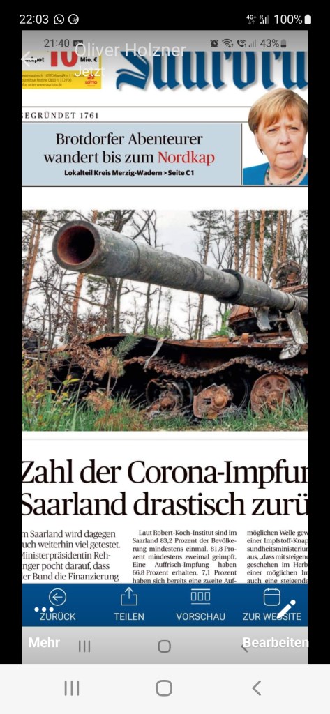 Ach ja, heute morgen hab ich es doch glatt auf die Titelseitte der Saarbrücker Zeitung geschafft. Gleich neben der Altkanzlerin. Hätte man sie nicht woanders platzieren können? Nein lassen wir das. Ich möchte hier keine Diskussionen anfachen.🤣😃