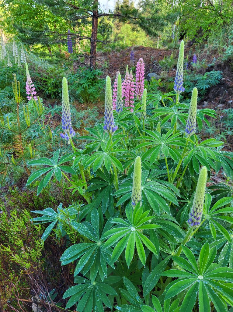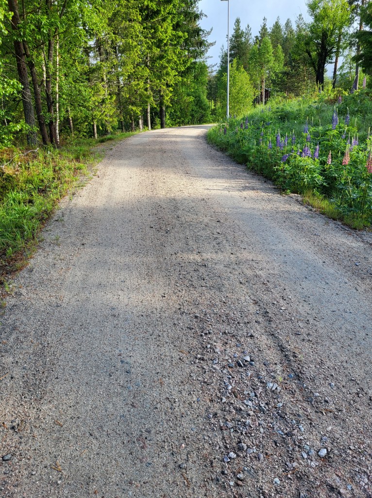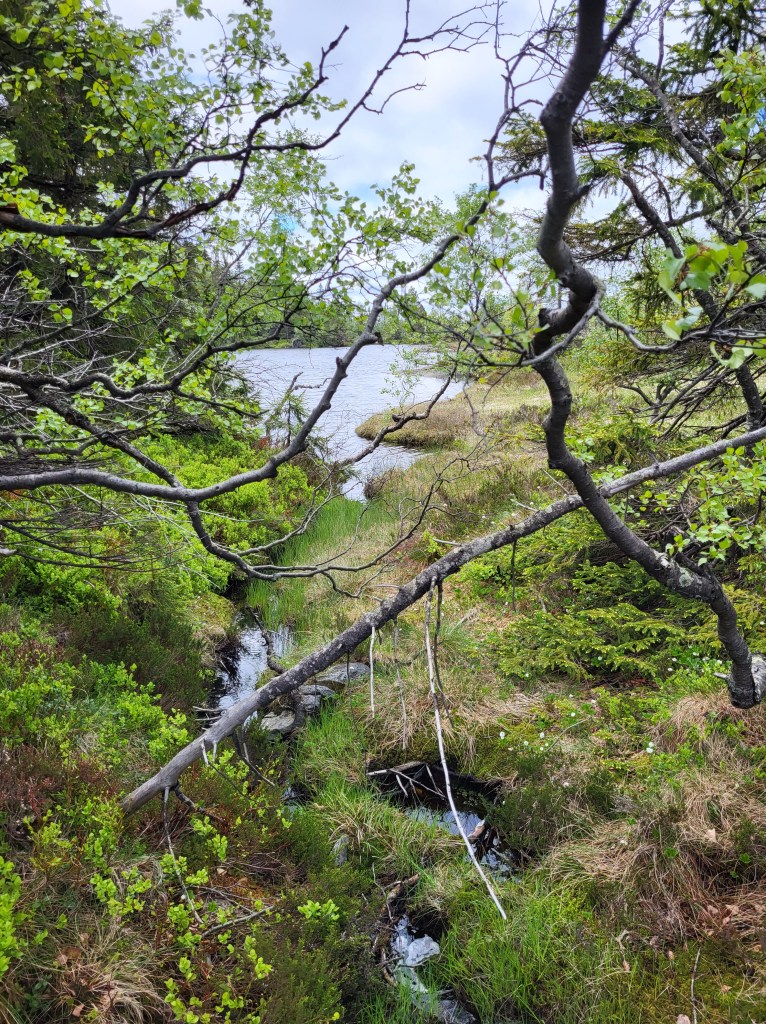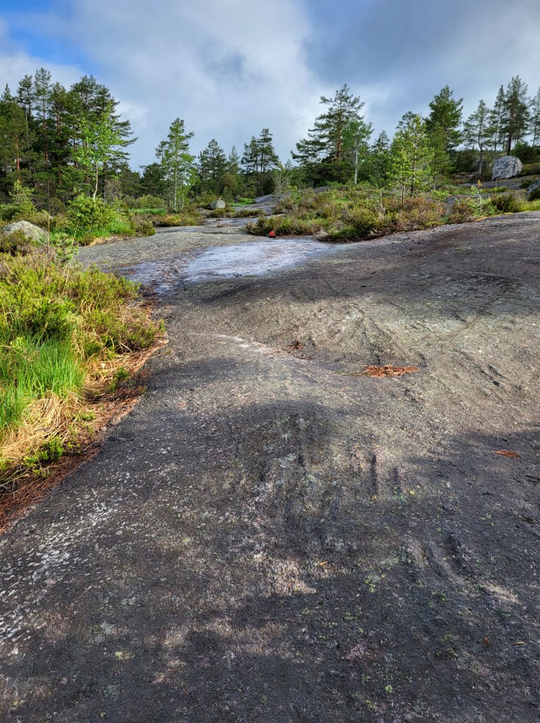 Bald schon geht es vom breiten Feldweg in einen schmalen Trampelpfad über. Kniehohes Gestrüpp und Beerensträucher – noch nass vom Regen – halten mir die Beine bis zu den Knien kühl und feucht. Noch halten die Schuhe dicht aber das wird sich bald ändern.