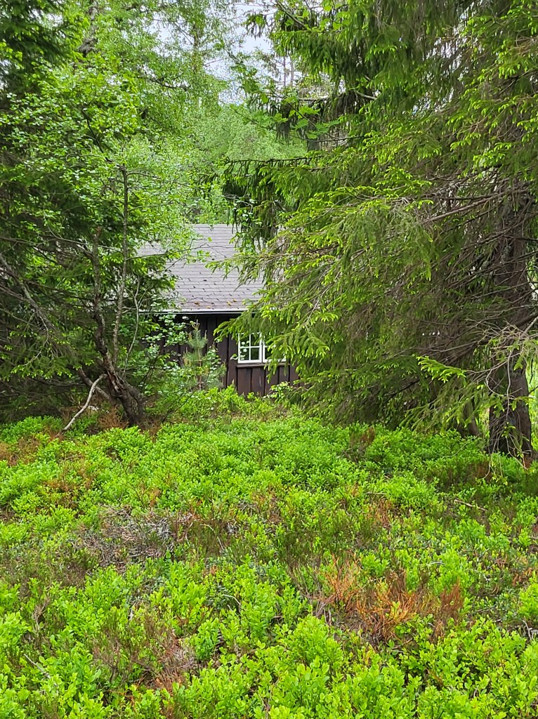 Dann auf einmal – ich komme gerade aus einem Gebüsch hervor – steht sie da in ihrer vollen Pracht: Die Skarsvassbuhütte.