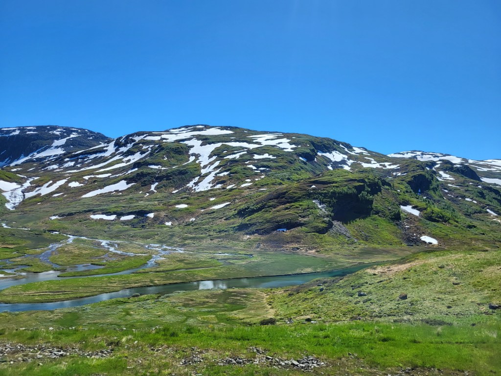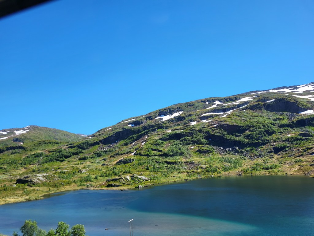 2017 hatte ich ähnliches erlebt, aber ich hatte damals alle Signale und Warnungen in den Wind geschlagen, bis es zum Zusammenbruch kam mit anschließender 18 monatiger Auszeit mit Reha usw. Nochmal möchte ich das nicht mehr durchmachen und deswegen die Entscheidung die Reißleine zu ziehen. Auch wenn es schwer fällt. Ich habe mittlerweile alles für die Rückreise in die Wege geleitet und bin gestern am Mittwoch mit der Bergensbahn nach Bergen gefahren, wo ich heut um 12 an Bord der Fähre nach Hirtshals gehe. Die Fahrt mit dem Zug nach Bergen führte durch die komplette Hardangervidda in Ost-Westrichtung. Wie ich mich da gefühlt hab, brauch ich ja wohl niemandem zu erklären. Aber ich komme wieder. Zwar nicht mehr zu Norge på langs, aber für ein bis zwei Wochen zum wandern bestimmt.